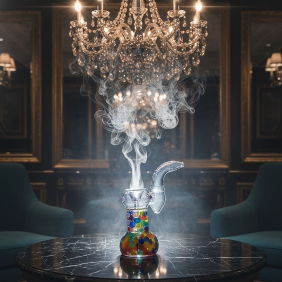 Inspired by the playful energy of high-concept art, the Orbeetz series is designed to be the crown jewel of your collection. Imagine this piece sitting on a backlit marble bar in a penthouse suite, its multi-colored “beads” glowing under the flicker of a grand chandelier. It captures a cool, hip, and slightly surreal aesthetic that transforms every session into a visual experience.