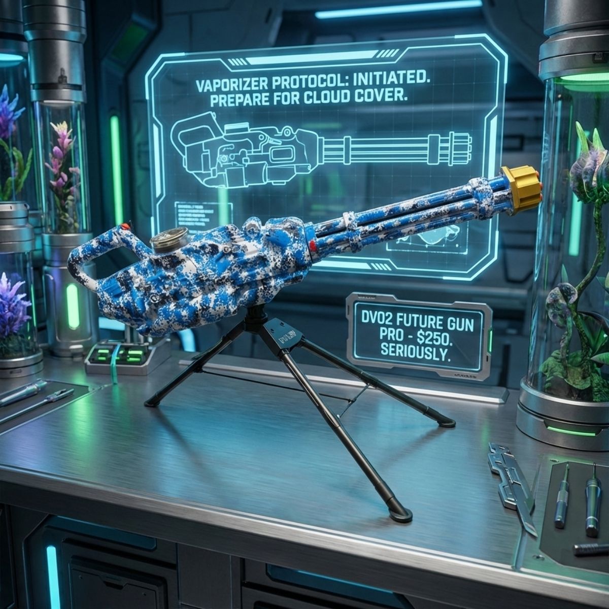The future of your sesh has officially landed. 🛸 The DV02 Future Gun Pro is a high-caliber masterpiece featuring a bold digital camo finish and a tripod-mounted design for ultimate stability. Whether you’re defending the galaxy or just your living room, this $250 pro-level rig is the only heavy artillery you’ll ever need. Mission accomplished. 🎖️💨