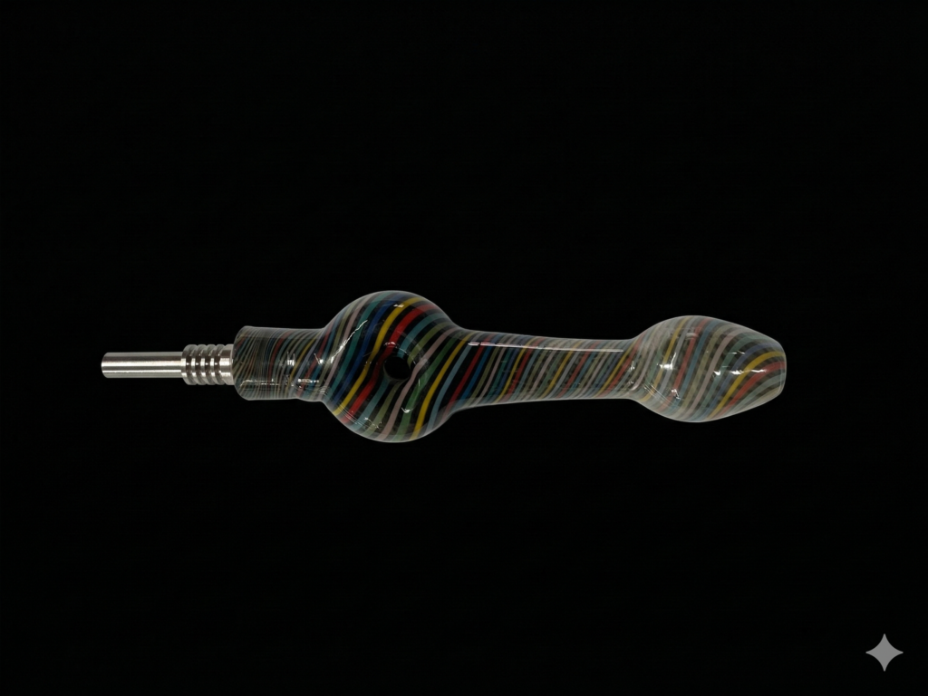 Elevate your concentrate experience with this artisan-crafted glass nectar collector. Featuring a stunning multi-color linework pattern, this piece combines bold visual appeal with functional durability. The ergonomic “honey straw” design ensures a comfortable grip, while the premium glass construction provides heat resistance and flavor purity.