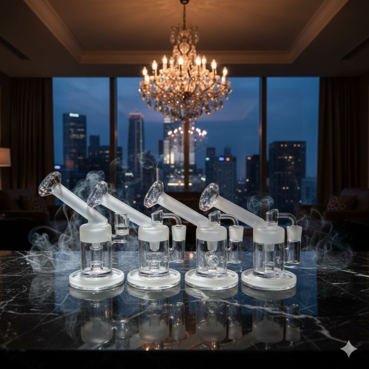 Stay frosty with the RC030F DIA FROST SIDEKICKS. We’ve taken our elite compact rig and given it a sophisticated frosted glass finish that screams “winter in the city.” With four precision perc options—Drum, Fork, UFO, and Showerhead—this isn’t just a rig; it’s a personalized cooling system for your clouds. Perfect for the marble tabletop or the VIP lounge.