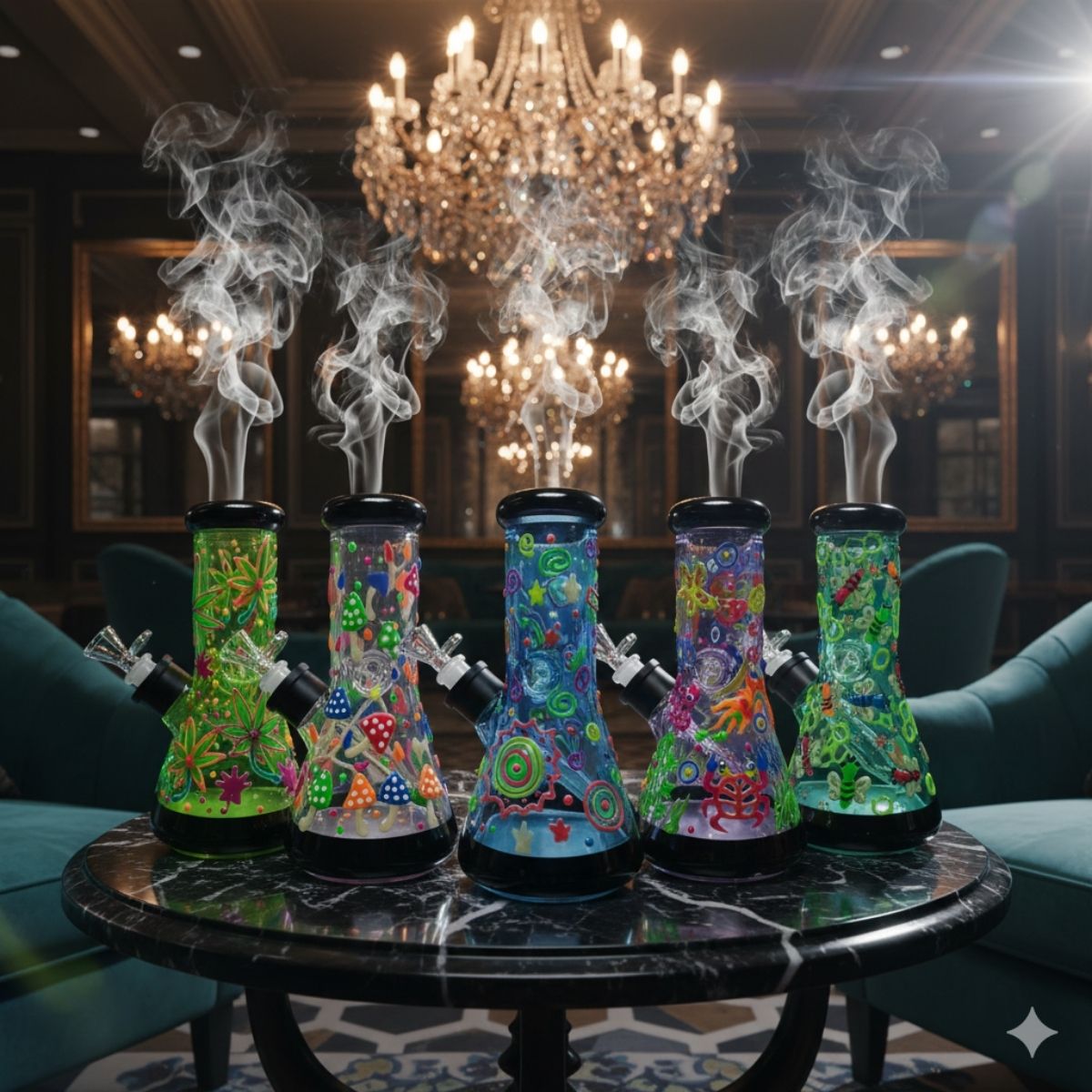 Light Up the Night. 🌌 Standard glass is a yawn—it’s time for a glow-up. Our Neon-Glow Artisan Beakers feature hand-painted, 3D-textured designs that pop in the daylight and come alive under blacklight. With everything from psychedelic mushrooms to underwater kingdoms, these pipes turn every session into a neon-soaked experience.