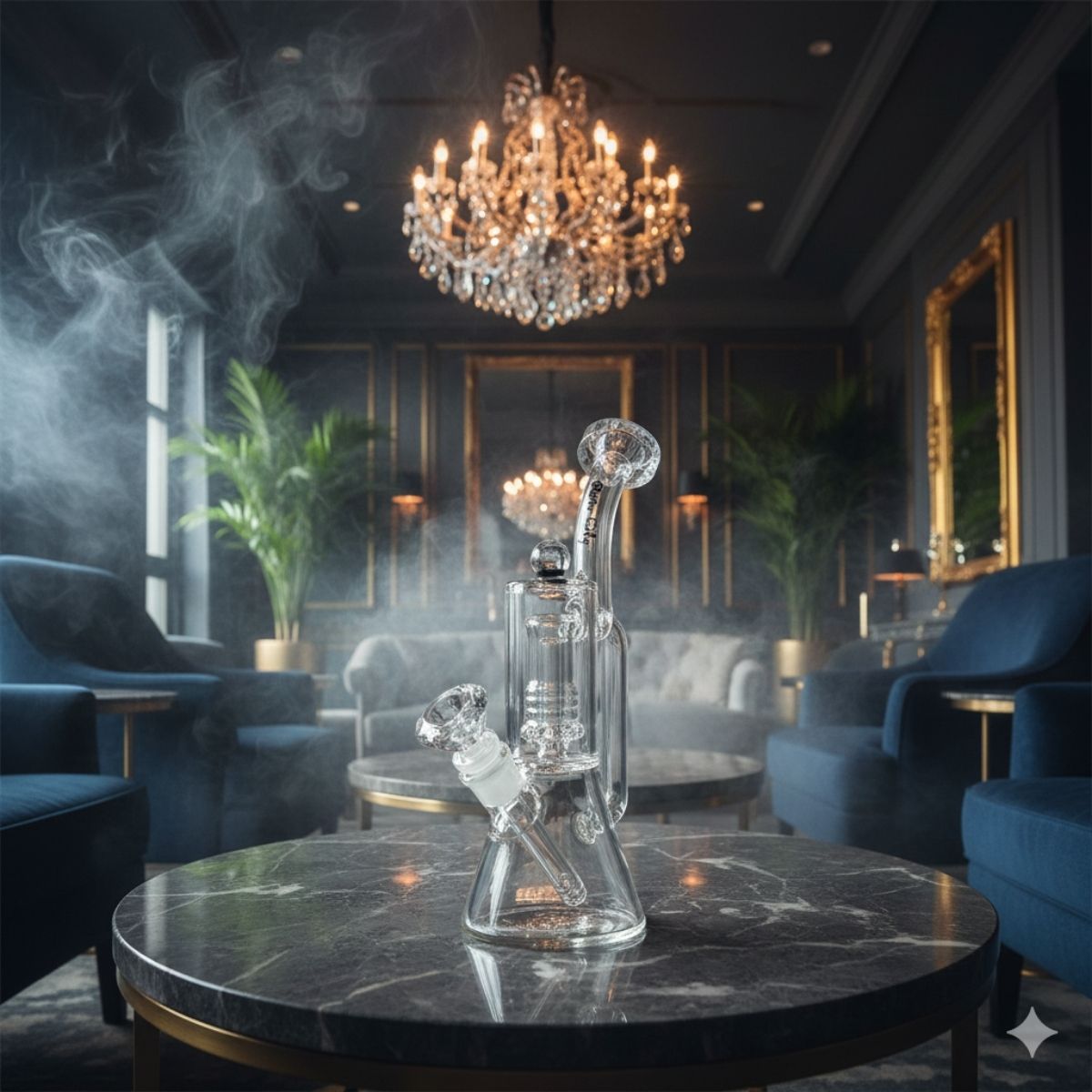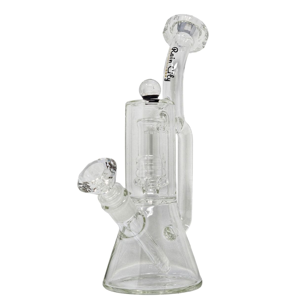 The design is elevated by the “Dia” diamond-faceted finish on the mouthpiece and accents, which catch and refract light to create a brilliant, high-end shimmer. Its low-profile, wide-base architecture makes it one of the most stable pieces in the Rain City collection—virtually tip-proof and perfect for a relaxed, worry-free session in a luxury setting.
