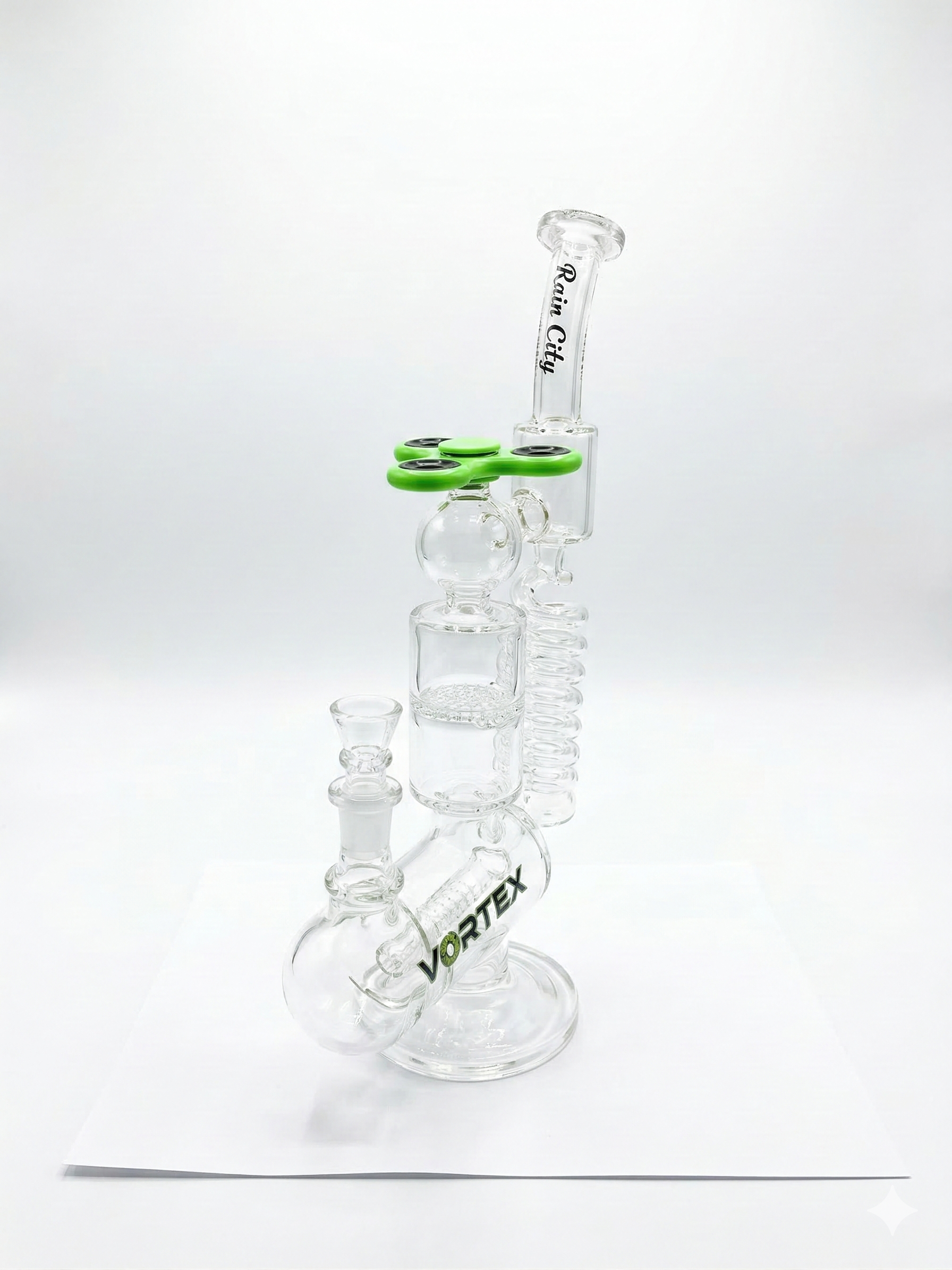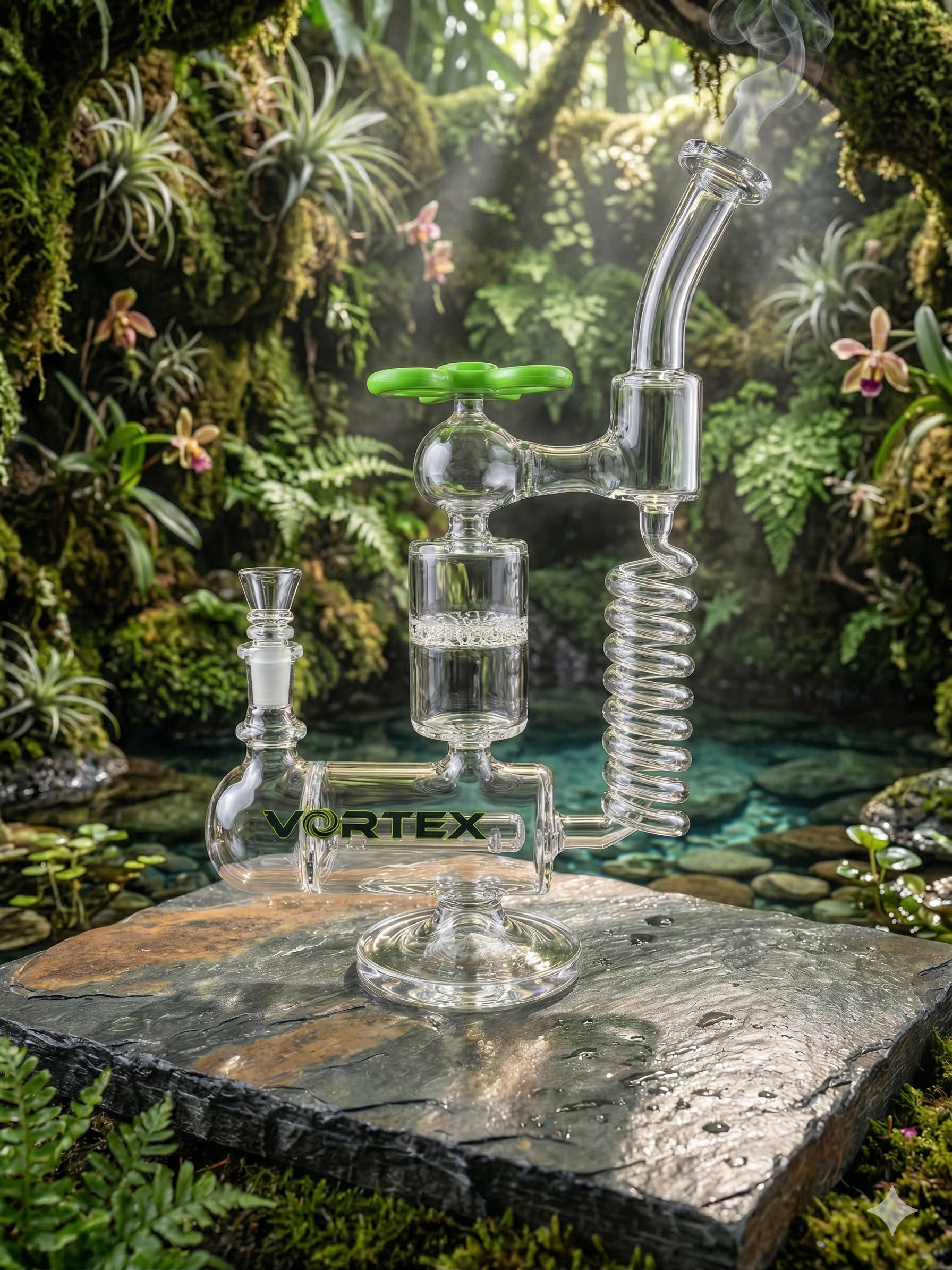 The defining feature of this masterwork is the precision-engineered glass condenser coil. As vapor travels through the spiral, the increased surface area provides maximum heat dissipation, cooling the vapor significantly before it reaches the mouthpiece. Combined with a high-volume inline chamber and a secondary vertical reservoir, the Helix Series delivers a silk-like experience that preserves the full terpene profile of your material.