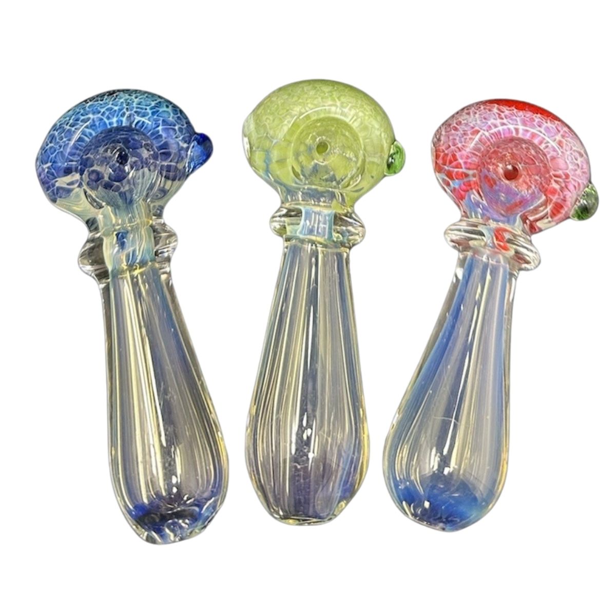 Keep your rotation fresh with the SP300 Mix Bucket. These essential glass spoons combine icy clear stems with vibrant, textured frit bowls that totally pop. Available in electric blue, lime green, and fiery red, these are the reliable daily drivers that look as good as they hit. Scoop your favorite vibe today.