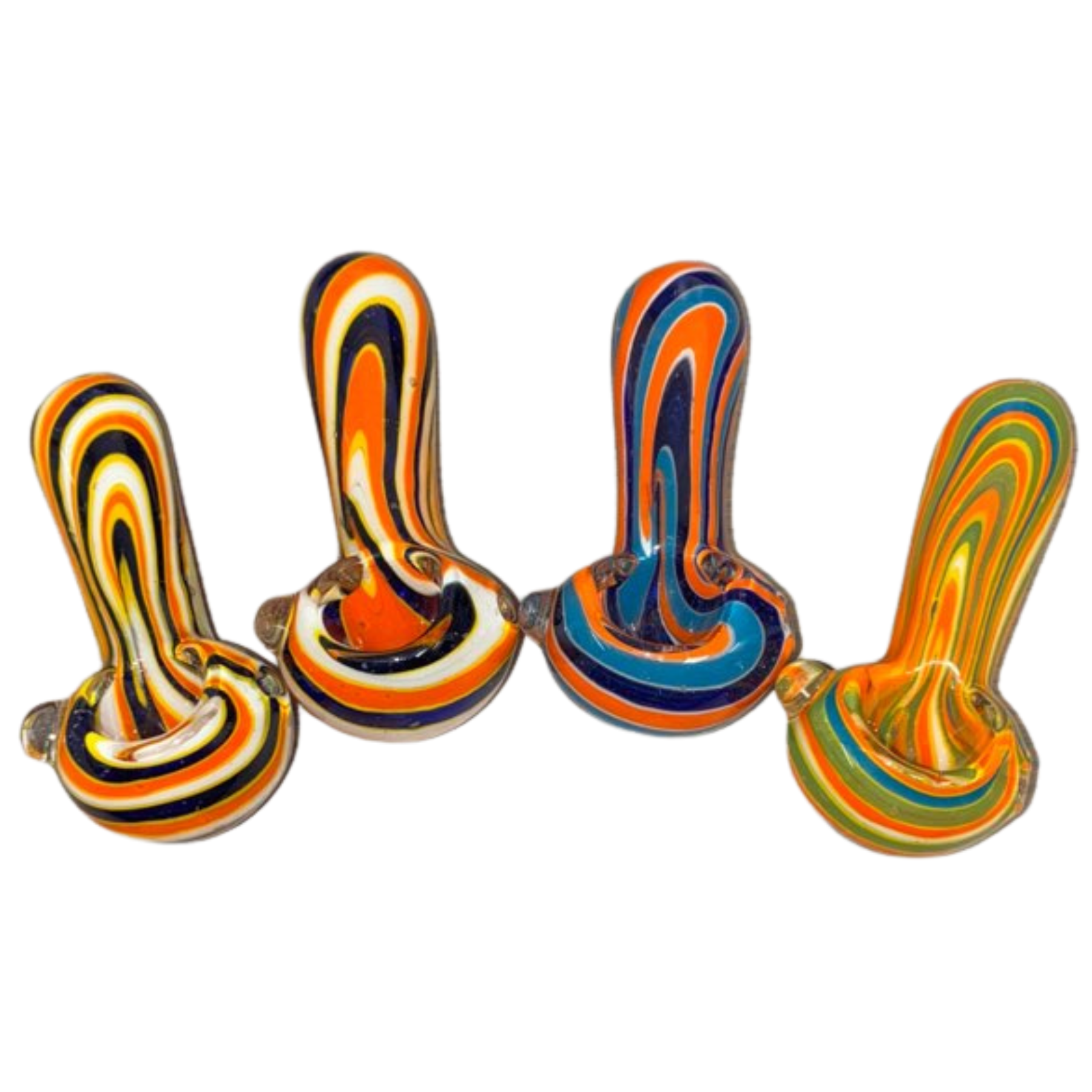 Stop scrolling and meet the SP600 Mix. These spoon pipes are all about high-contrast energy and impeccable hand-blown craftsmanship. Featuring hypnotic “wig-wag” stripes and a vibrant palette of citrus oranges, deep blues, and electric greens, this pipe isn’t just an accessory—it’s a conversation starter. Bold, durable, and effortlessly cool. 🍭✨