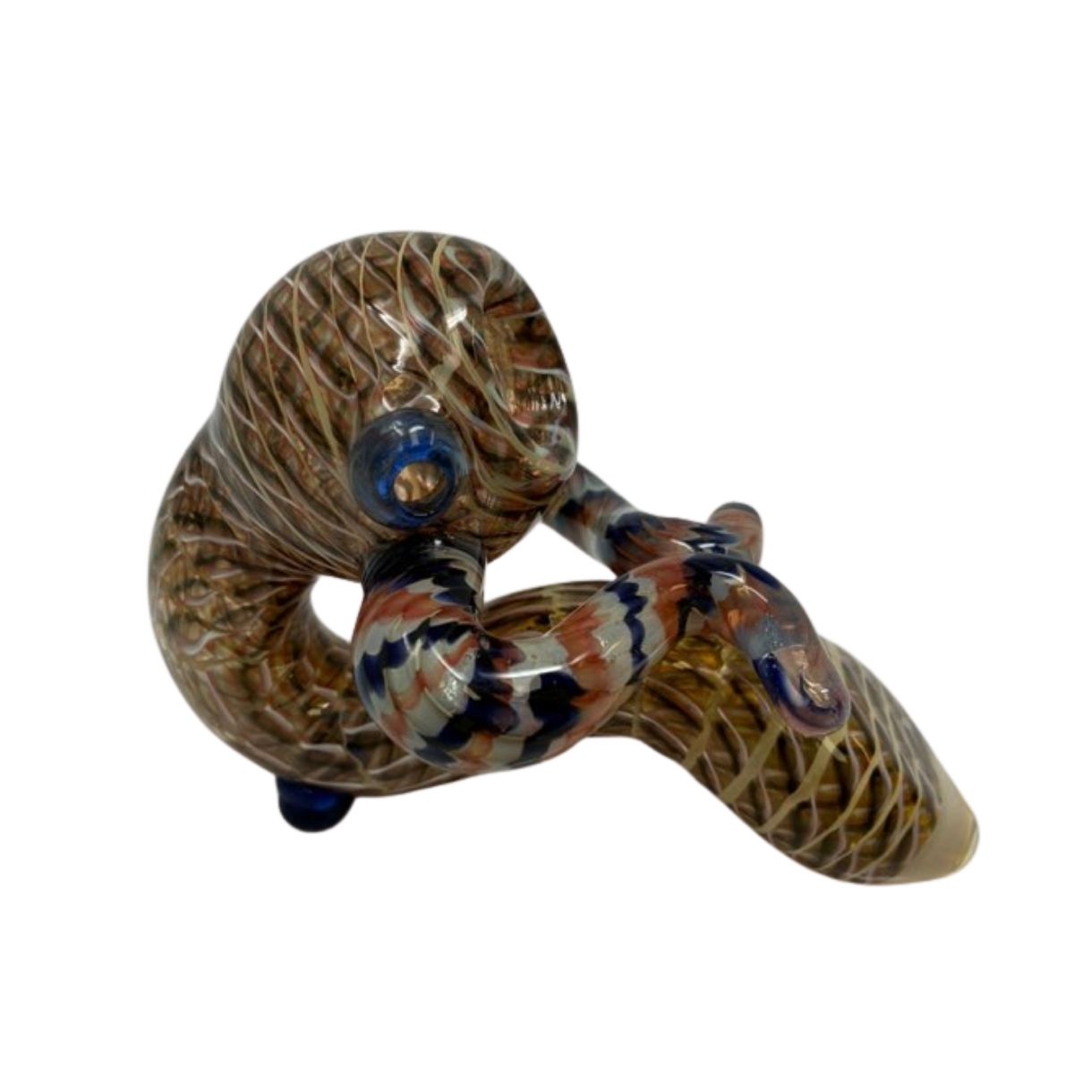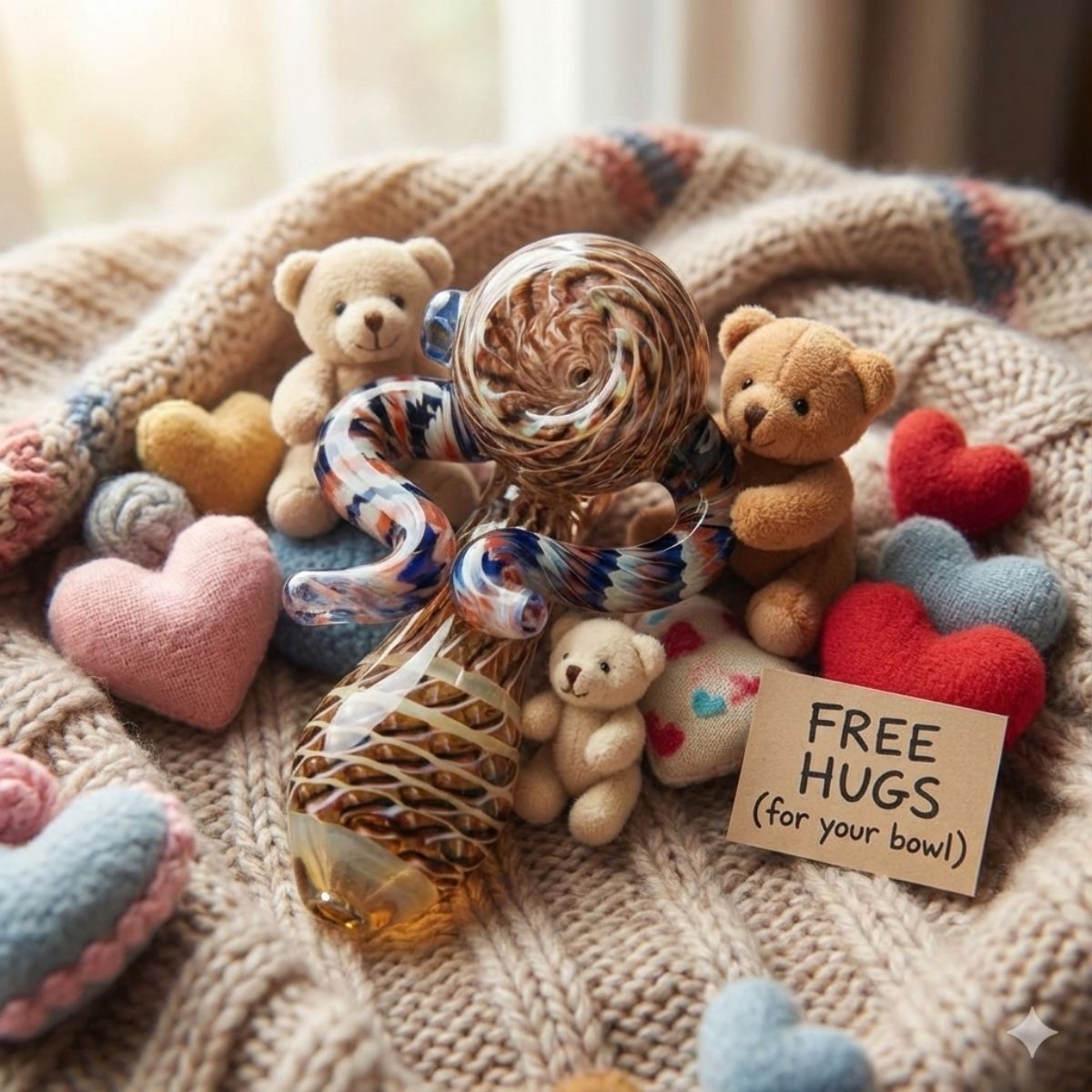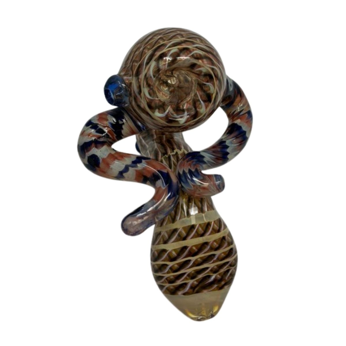 Hug it out with the SR03 Free Hug—the pipe that literally embraces your vibe! This hand-crafted spoon pipe features a pair of twisted glass “arms” in a patriotic red, white, and blue swirl that wraps around the neck in a cozy embrace. 🇺🇸 With its warm brown and tan swirled body, it’s the ultimate comfort piece for your collection. 🤎