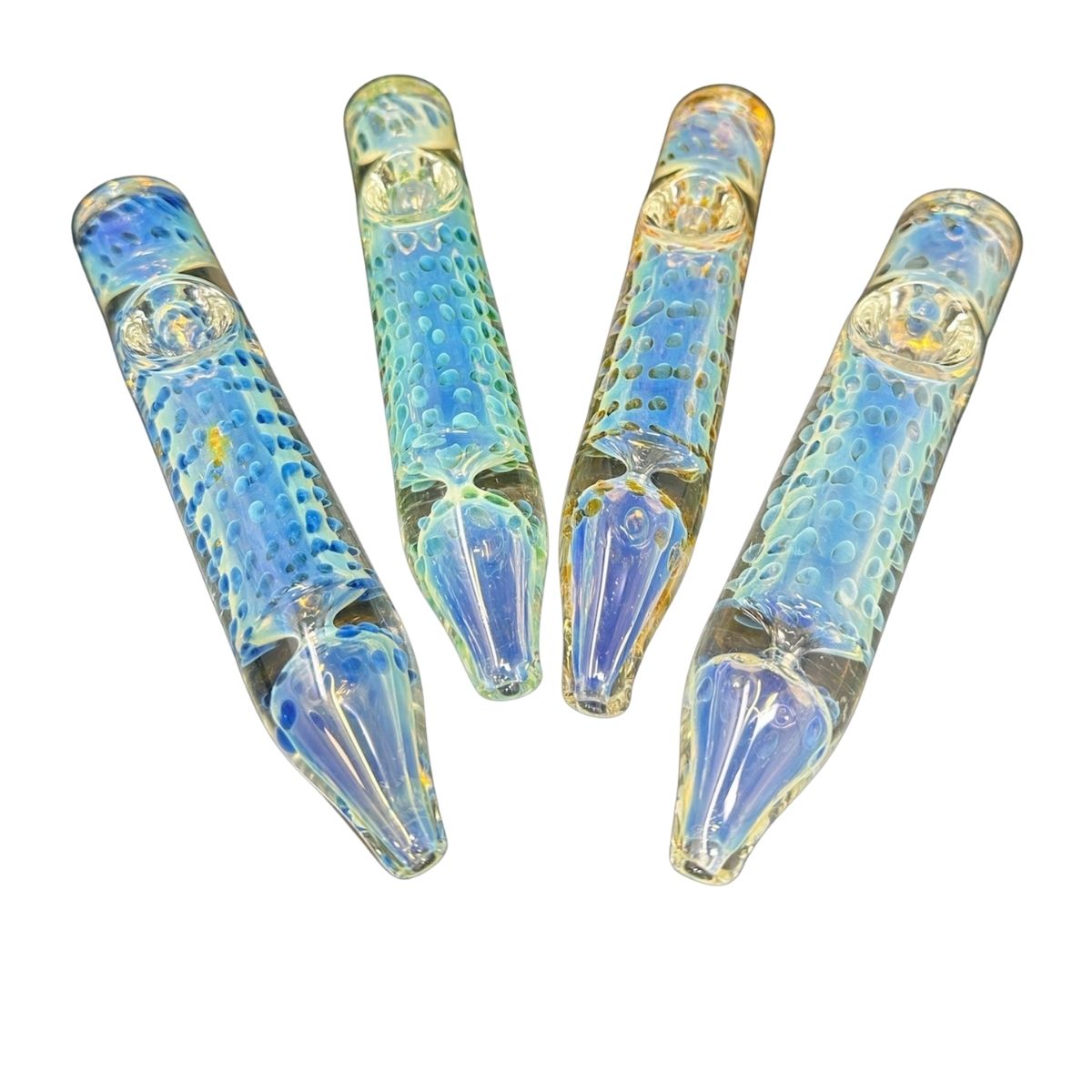 Iridescent Fumed Finish: Crafted using a fuming process, these rollers display a ghostly, shimmering quality that shifts between deep nebula blues and golden hues depending on how the light hits them.