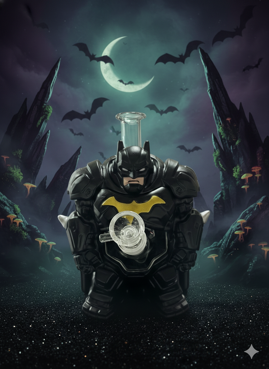 Emerging from the shadows of the Batcave, this isn’t just a waterpipe—it’s a statement piece. Modeled after the Caped Crusader in his heaviest battle armor, this piece brings super-heroic strength to your daily rotation.