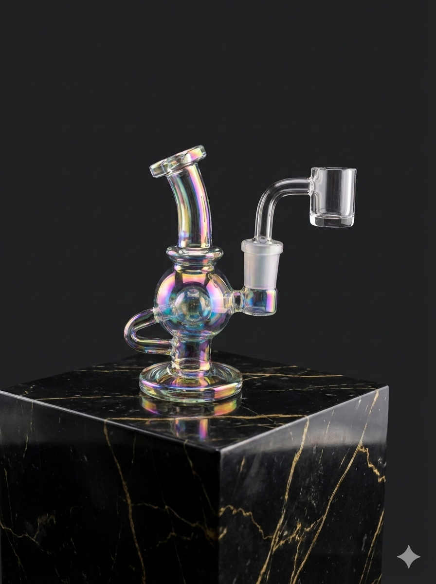 Experience smooth, flavorful hits with our collection of Mini Ball Dab Rigs. Crafted from high-quality borosilicate glass, these compact rigs are designed for both style and function. Each piece features a unique bent neck design for comfortable use and a sturdy ball base for stability. The collection includes five stunning color options to match your personal taste, from vibrant iridescent rainbow to elegant pearl white.