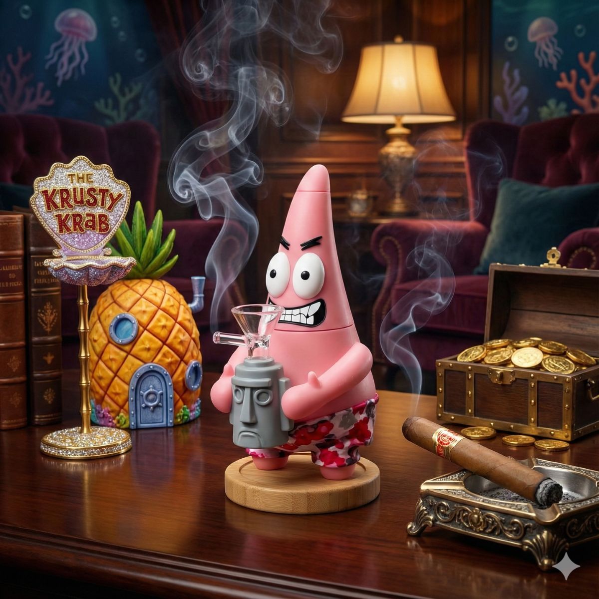 • Iconic Design: He’s pink, he’s wearing his signature floral shorts, and he’s holding a “Stone Head” bucket (we all know who lives there) that acts as the chamber. It’s a hilarious tribute that doubles as a legit art piece.