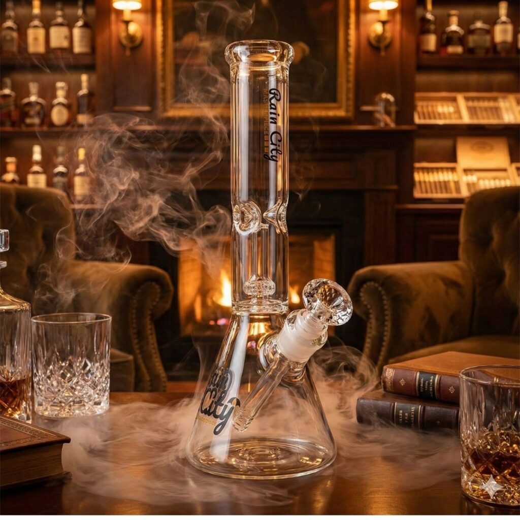 Built Different: Thick borosilicate glass with the signature Rain City decal. It feels luxurious in your hand, not like cheap gas station glass.