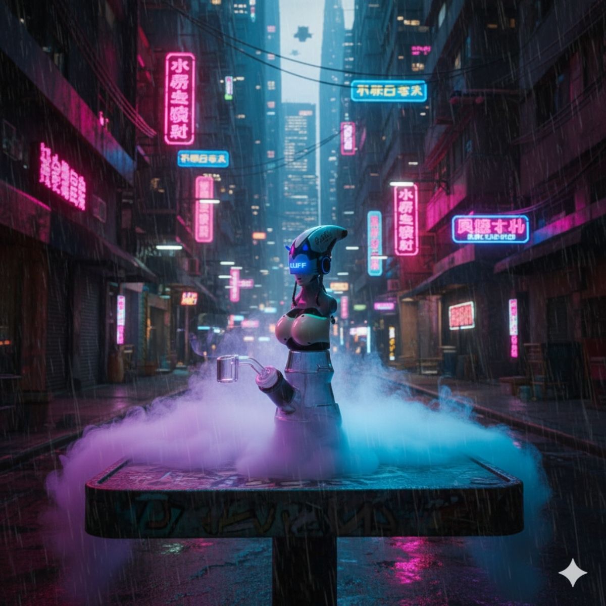 Welcome to the big leagues with the RC045 C-PUNK GIFT SET. This hybrid rig fuses a sleek, smoked-glass beaker base with a detailed, cyber-inspired android bust. Available in Neon Pink, Electric Blue, and Acid Green, it features glowing visors and integrated tech details that look like they were ripped straight from a Night City penthouse.